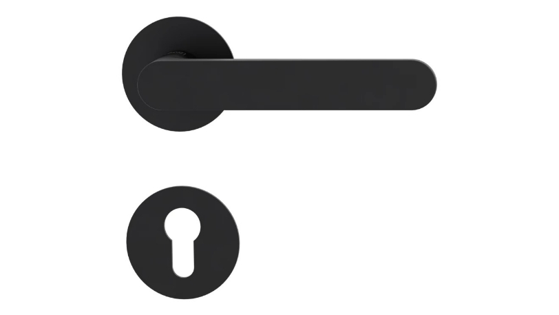 Klamka GRIFFWERK Avus Piatta S, kolor grafitowo-czarny, z dolną rozetą na wkładkę patentową (do drzwi o grubości skrzydła 50 mm)