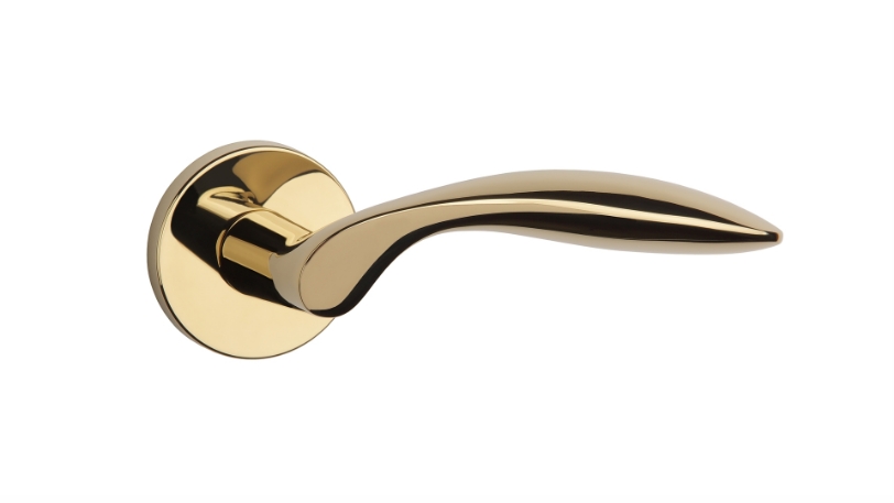 Klamka APRILE Gerbera, rozeta okrągła R slim 7 mm, kolor złoty polerowany (LG)