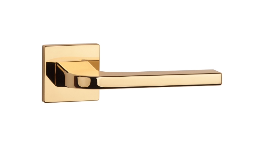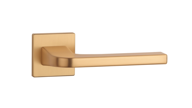 Klamka APRILE Ismena, rozeta kwadratowa Q slim 7 mm, kolor złoty matowy (KG)