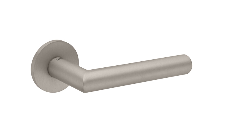 Zestaw klamek na rozetach kwadratowych o grubości 5mm. Łatwy montaż na adapter wewnętrzny na tak zwany „klik”. Podwójny system sprężyn poziomujących rękojeści, zespolony z rozetą podklamkową. Kwadratowy trzpień 8×100 mm. Montaż na dwie śruby M6, niewidoczne po zamontowaniu.