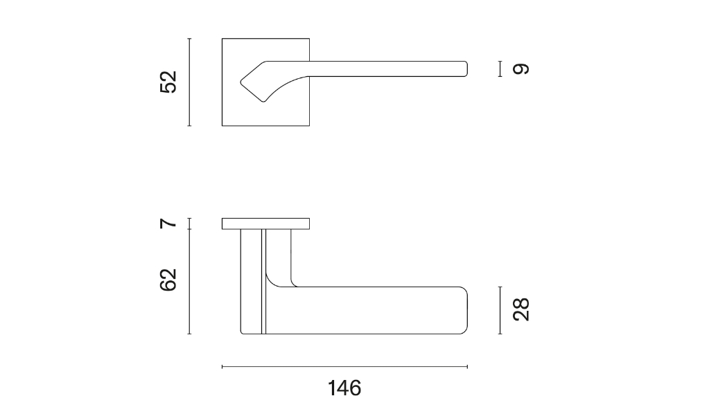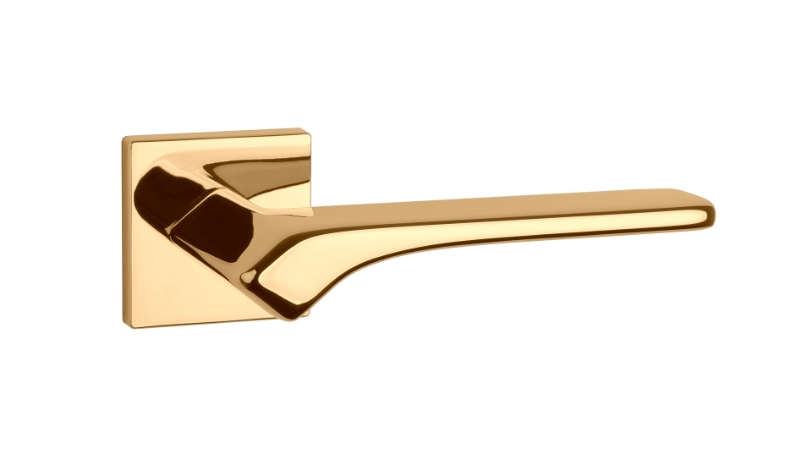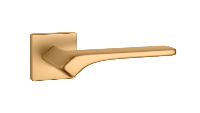 Klamka APRILE Bergenia, rozeta kwadratowa Q slim 7 mm, kolor złoty matowy (KG)