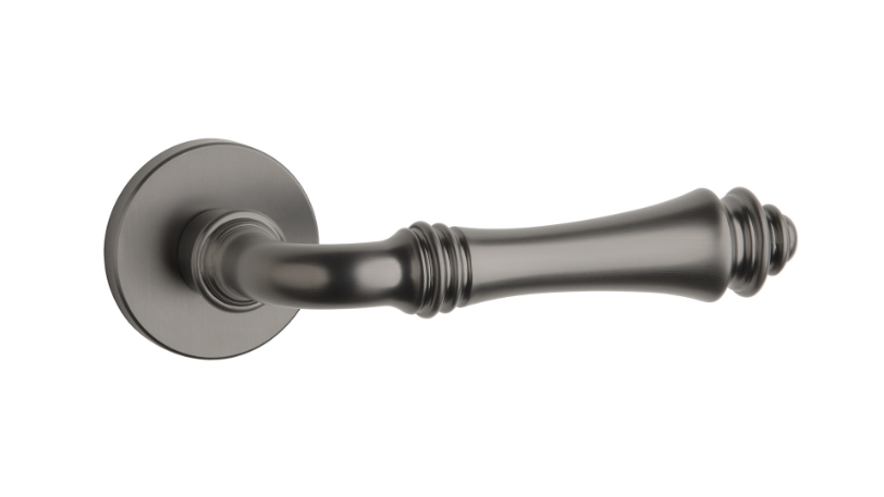 Klamka APRILE Camelia, rozeta okrągła R slim 7 mm, kolor grafit (GYM)