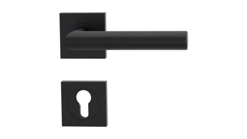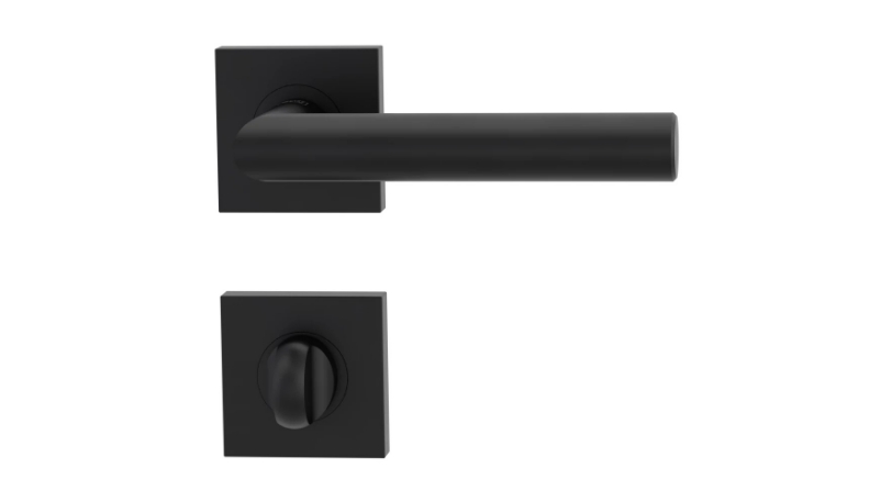 Klamka GRIFFWERK Lucia Prof Q, kolor grafitowo-czarny, z dolną rozetą WC (do drzwi o grubości skrzydła 50 mm)