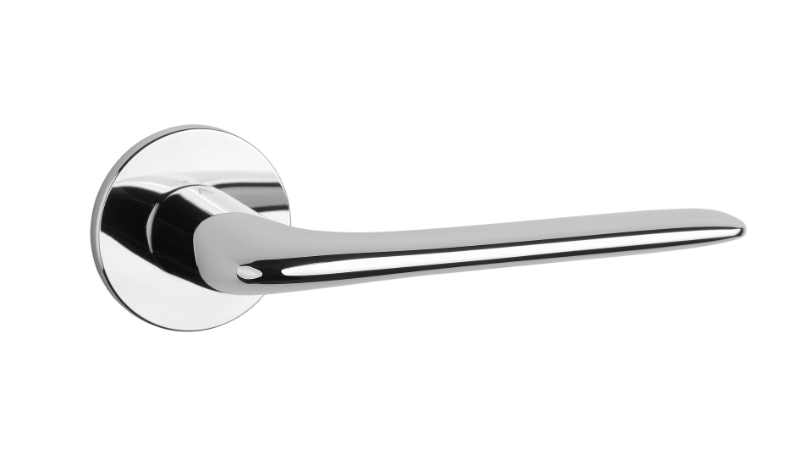 Klamka APRILE Viola, rozeta okrągła R super slim 7 mm, kolor chrom szczotkowany (DSC)