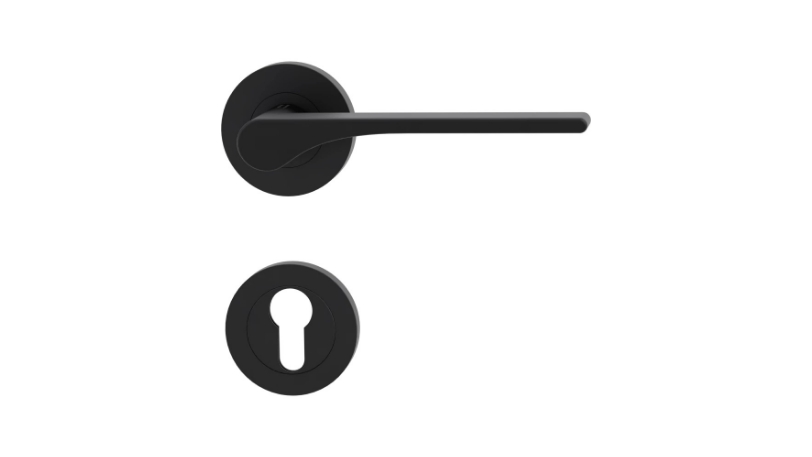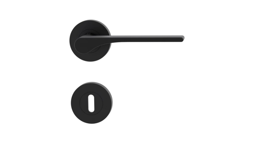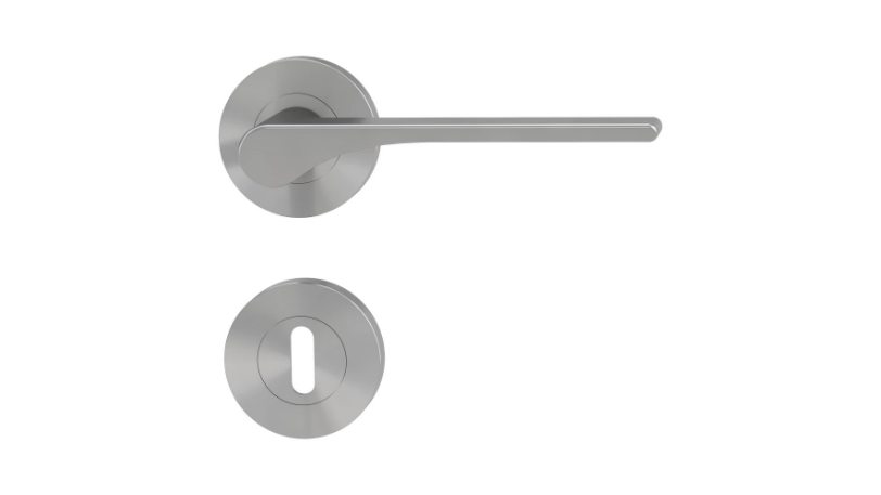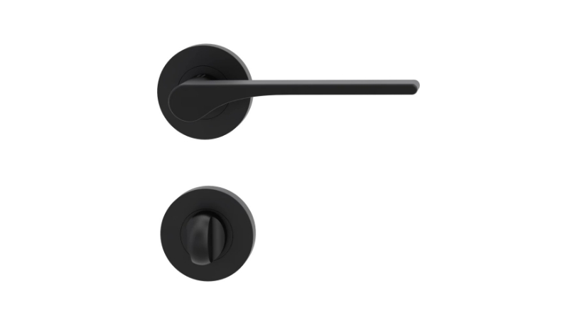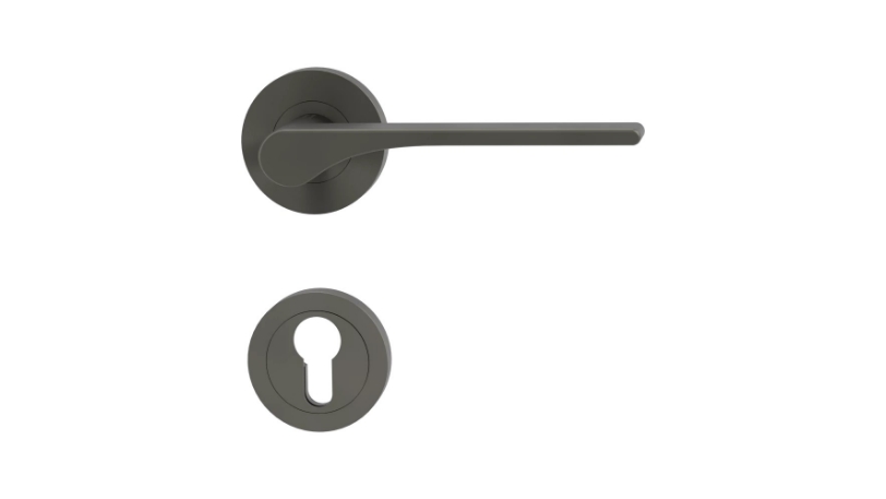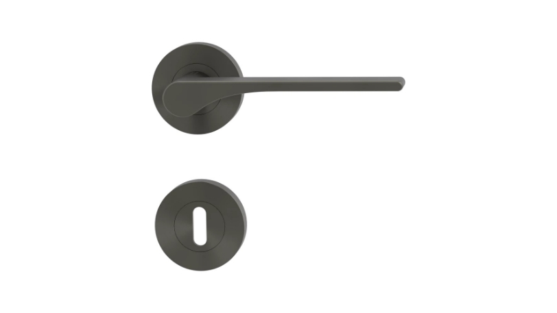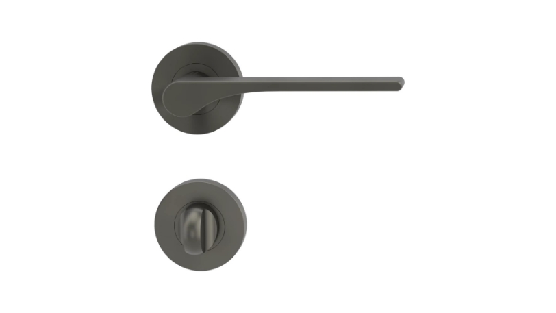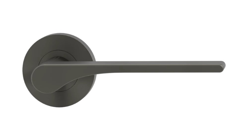 Klamka GRIFFWERK Leaf Light, kolor kaszmirowy szary, z dolną rozetą WC (do drzwi o grubości skrzydła 50 mm)