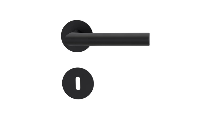 Klamka GRIFFWERK Lucia Piatta S, kolor grafitowo-czarny, z dolną rozetą WC (do drzwi o grubości skrzydła 50 mm)