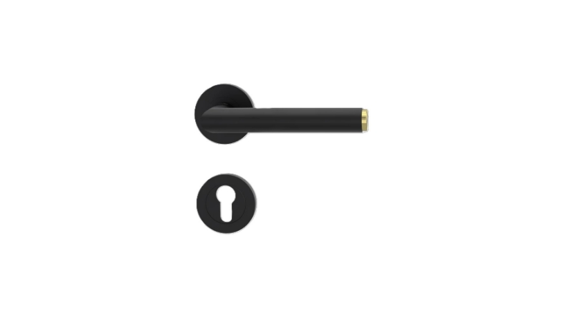 Klamka GRIFFWERK Lucia Select, kolor grafitowo-czarny/mosiądz, z dolną rozetą WC (do drzwi o grubości skrzydła 50 mm)