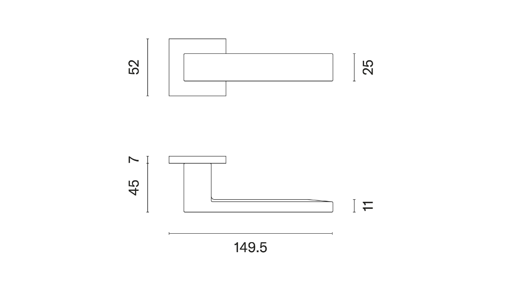 Klamka APRILE Pina Q, rozeta kwadratowa slim 7 mm, kolor miedziany (PN PVD)