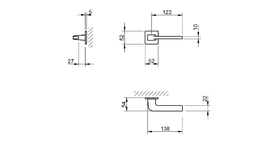 Zestaw rozet do drzwi łazienkowych na szyldach kwadratowych 52mm o grubości 5mm. Możliwość awaryjnego otwierania z zewnątrz. Trzpień kwadratowy 4×4 mm.