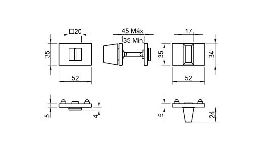 Zestaw rozet prostokątnych o grubości 5mm, do drzwi łazienkowych WC.
