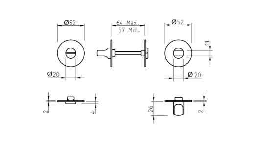 Zestaw rozet okrągłych Ø52mm o grubości 2mm, do drzwi łazienkowych.